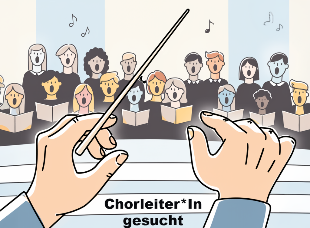Zum Bedauern aller Chormitglieder wird uns unsere Leiterin Brigitte Stumpf-Gieselmann nach fünf begeisternden Jahren im Sommer 2026 verlassen. Wir wollen sehr gerne unsere erfolgreiche Chorarbeit in der gewohnten Intensität weiterführen. Deshalb sind wir auf der Suche nach einer neuen engagierten Leitung. Wir proben derzeit am Montag 20-22 Uhr (über einen anderen Probentag kann man diskutieren).
